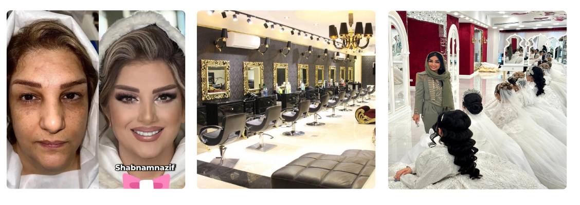 • خدمات تخصصی عروس (گریم و میکاپ، پاکسازی پوست، خدمات رنگ و مش، خدمات ناخن)